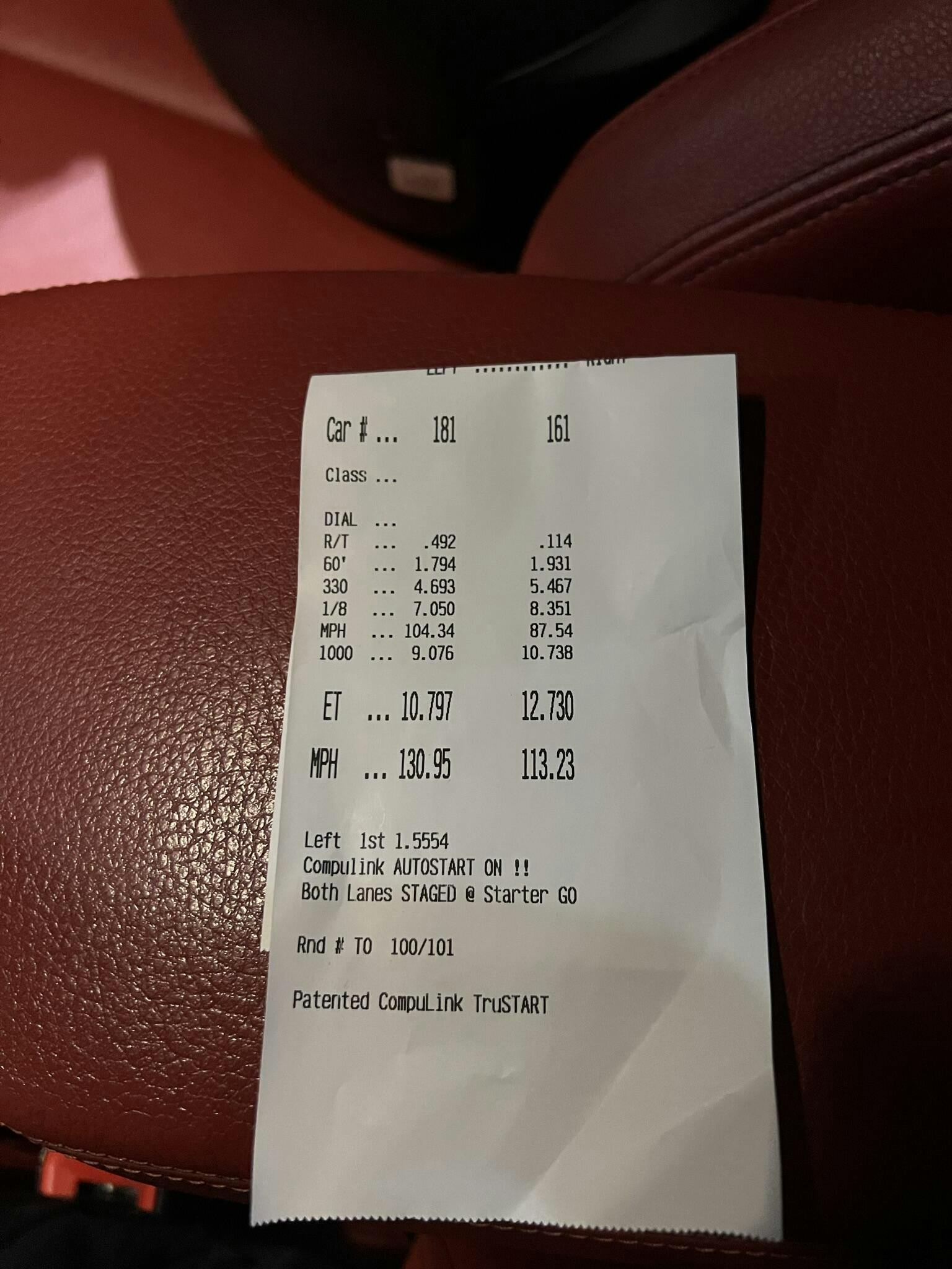 1/4 Mile: 10.79 @130MPH (Spinning)